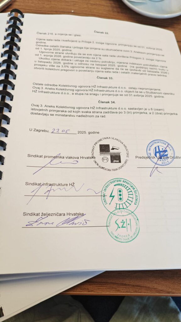 23.5.2025. – Potpisan 3. aneks kolektivnog ugovora HŽ infrastrukture d.o.o.